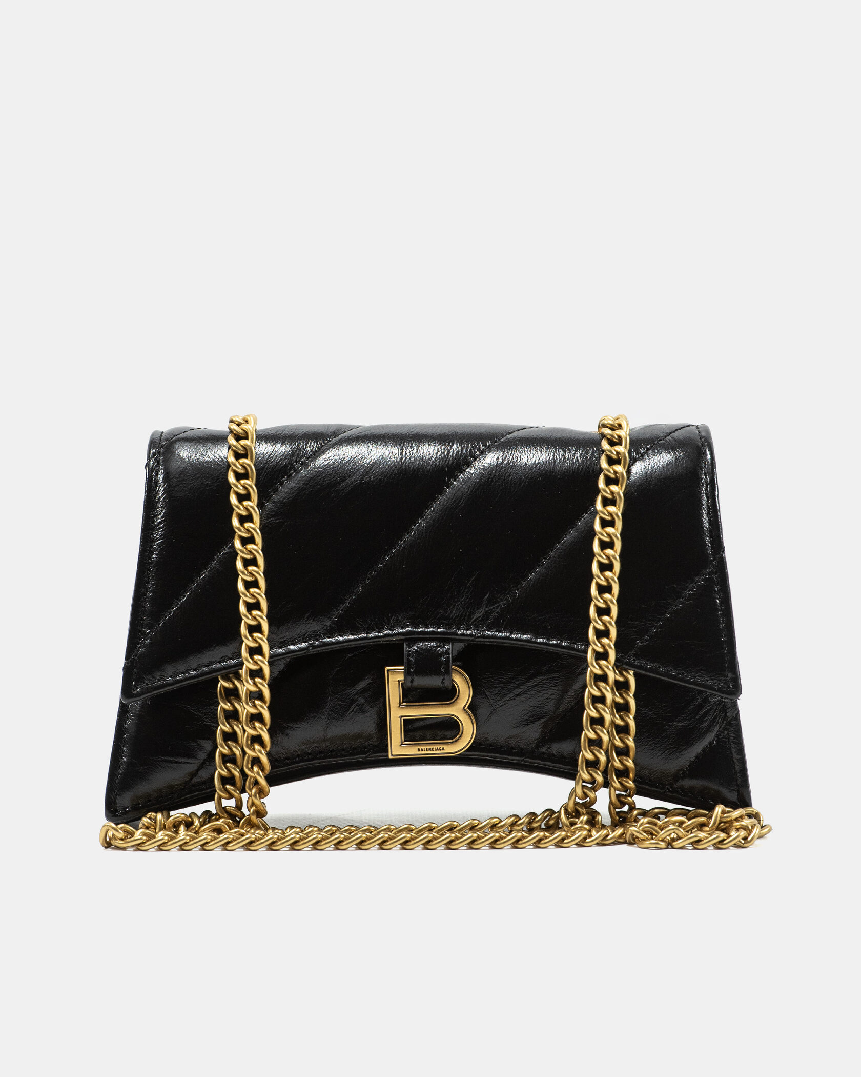 Розмір 21x13x6смМатеріал: Гладка еко-шкіра з лакованим ефектом та м’якою фактурною стьожкоюФурнітура: Золотиста, акцентна металева літера “B”Закриття: Клапан на магнітній кнопціВідділення: Одне основне відділення, кишенька на блискавці, відкриті секції для дрібницьРемінь: Золотистий ланцюжок (носиться на плечі або як крос-боді)Стиль: Втілення гламурного мінімалізму. Модель Balenciaga — це про сміливість, естетику та впевненість. Ідеальна для вечора, свят або стильних міських виходів