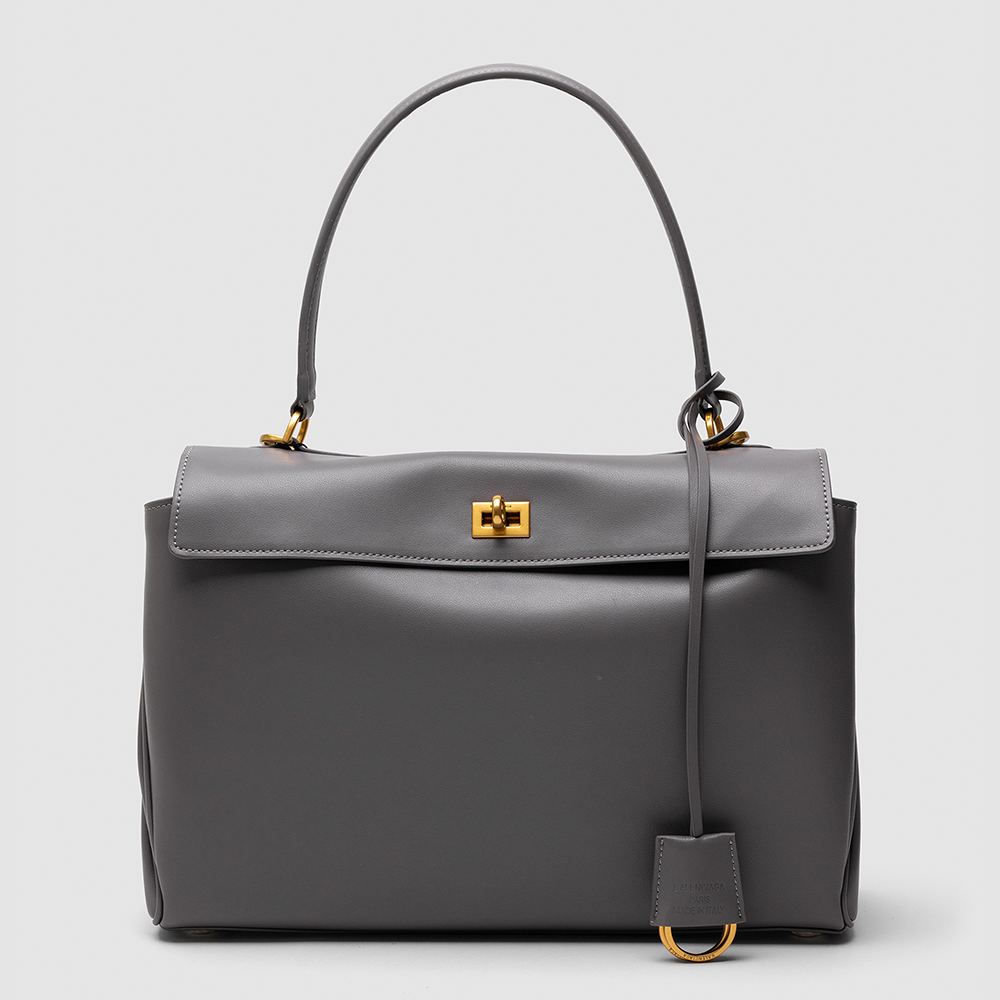 Розмір 35х26х9смСумка виконана з гладкої та приємної на дотик шкіри.Всередині два відділення, також є кишеня на застібці.Більш вмісткою сумку можна зробити відстібнувши заклепки по боках.Підкладка з гладкої чорної шкіри.Фурнітура металева, брендована.Зачиняється на фірмовому механізмі.Ремінець для носіння через плече виконаний зі шкіри, має можливість регулювання за довжиною.Комплектується в брендовій коробці на магнітах та пильовику, є буклети.