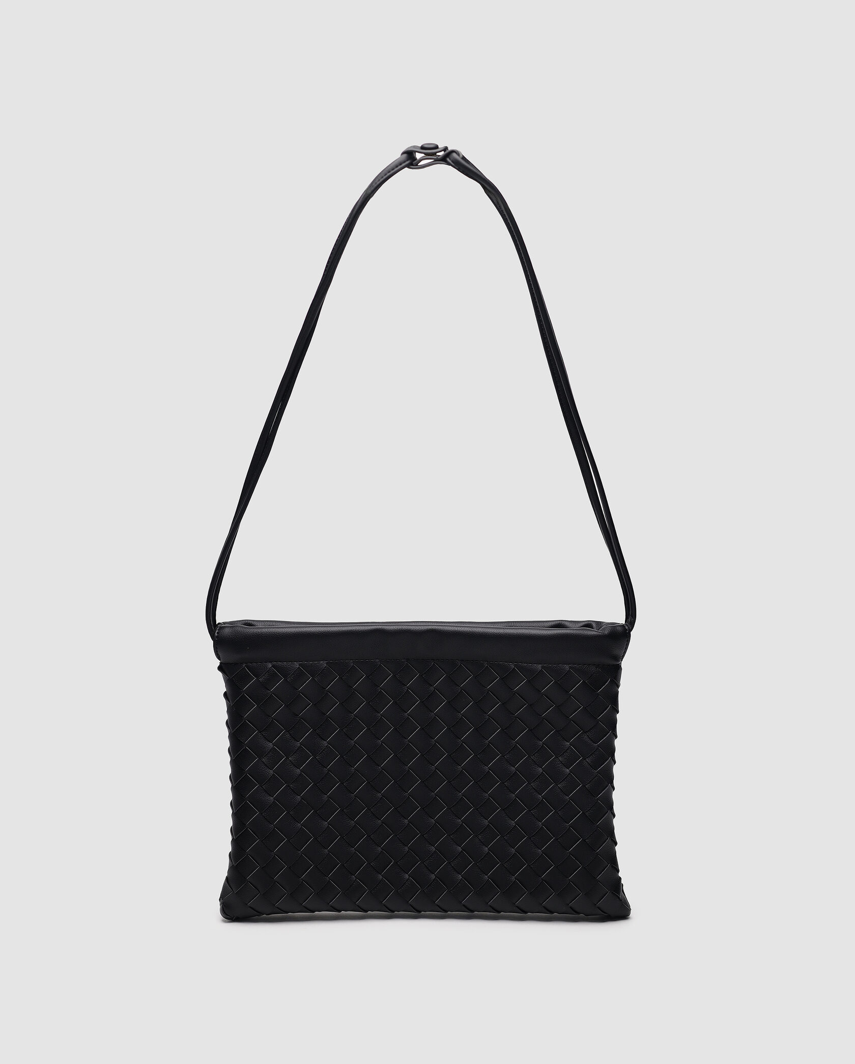 Розмір 30х23х3.5смСумка виготовлена з гладкої плетеної шкіри.Всередині одне велике відділення, є кишеня на застібці.Зачиняється на магніті-клапані.Підкладка з щільного текстилю з фірмовим тисненням на шкіряному язичку.Ручки фіксованої довжини, регулюються як для носіння у руці, так і через плече.Комплектується в брендовій коробці та пильовику.