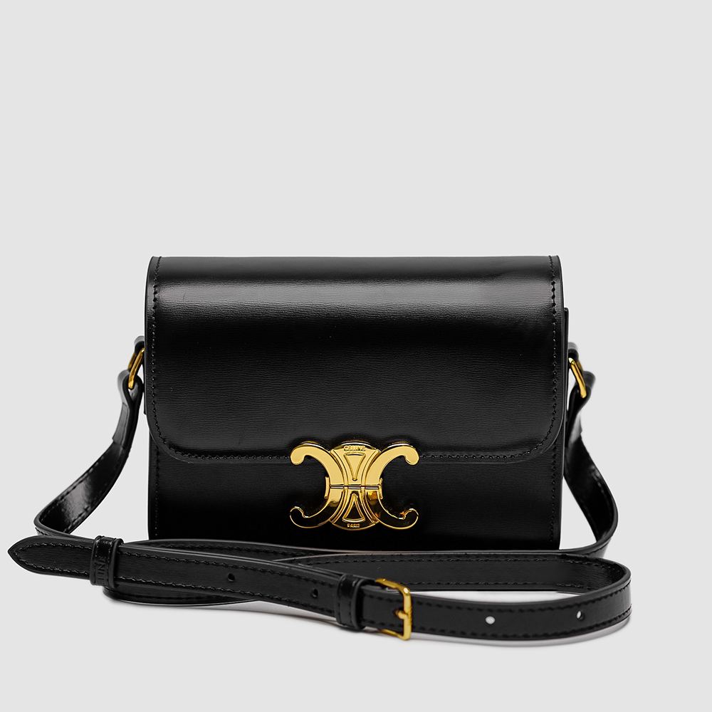 Celine Teen Triomphe Bag Black in Shiny Calfskin