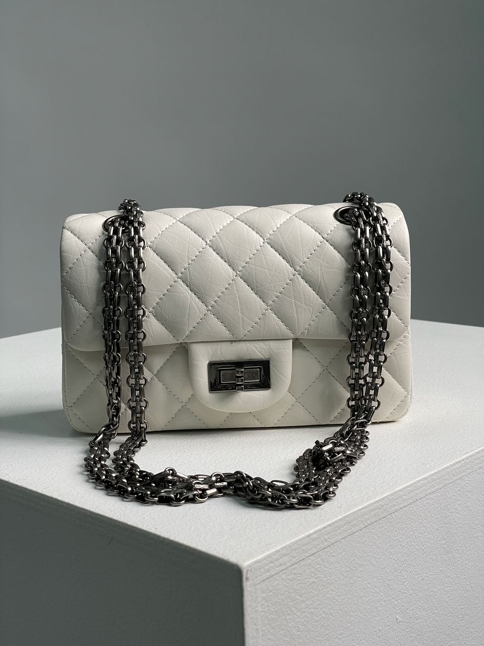 Chanel 1.55 Reissue Double Flap Leather Bag White/Black