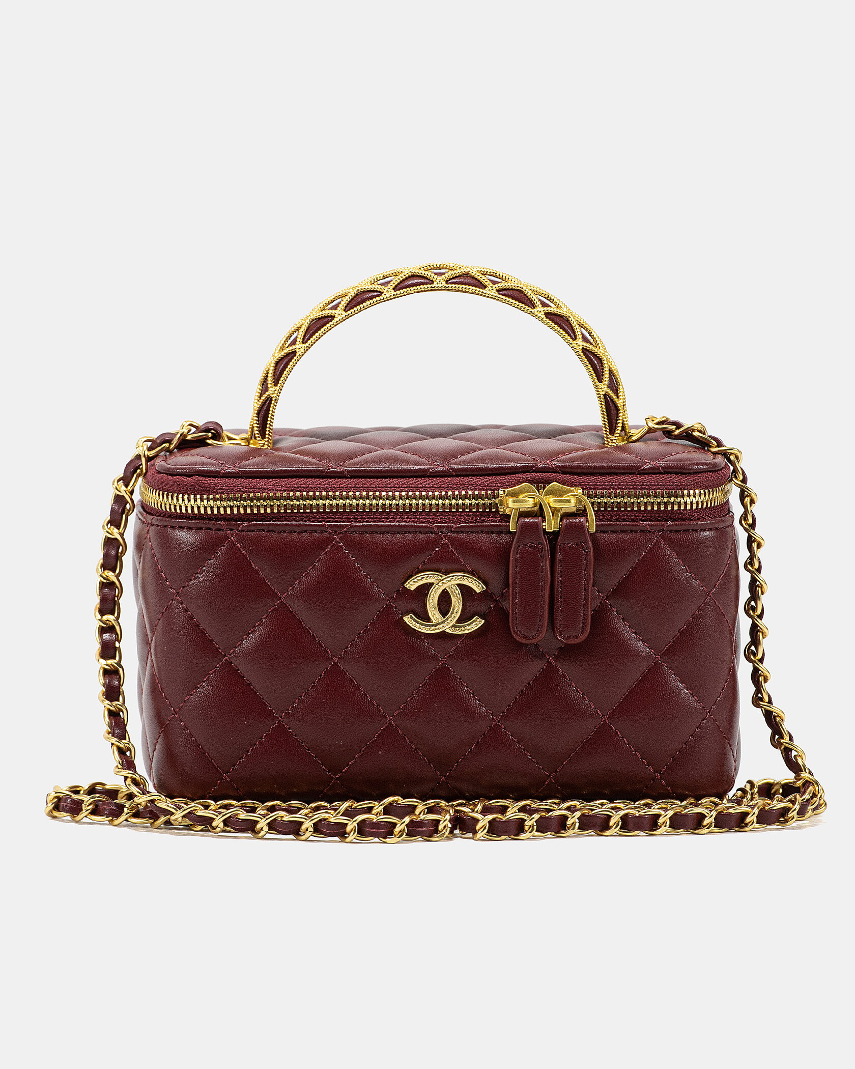 Розмір 17х10х7смМатеріал: Шкіра Фурнітура: Золота, акцент на логотипі ССРучка: Плетена ланцюжком у тонЛанцюжок: Довгий, з елементами шкіриУсередині: Щільна підкладка, основне відділення + кишеніФормат: Жорстка конструкція vanity з подвійною блискавкоюСтиль: Ідеальна для естеток і тих, хто любить увагу