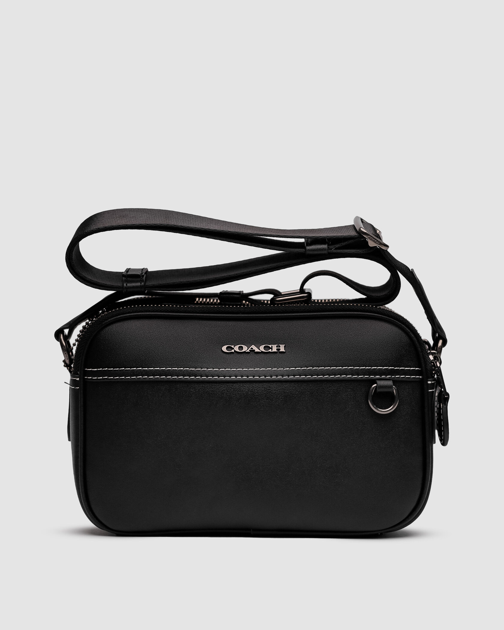 Розмір 23х15х7смСумка виконана з гладкої шкіри з білою прострочкою.Всередині одне відділення, також є невеличка кишеня.Підкладка з щільного та якісного текстилю, є шкіряна нашивка з брендовим тисненням та бірка.Фурнітура дуже якісна, металева та брендована.Ремінець з щільного текстилю чорного кольору, має регулюєму довжину.Комплектується в брендову коробку та пильовик.