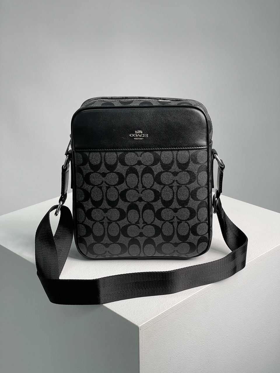 Розмір 22х26х7смСумка виготовлена з гладкої шкіри з фірмовою канвою.Всередині одне велике відділення, також є дві кишені одна з яких на застібці.Підкладка з щільного текстилю, на дотик нагадує замш.Фурнітура якісна, металева та брендована.Ремінець з щільного текстилю чорного кольору, має регулюєму довжину.