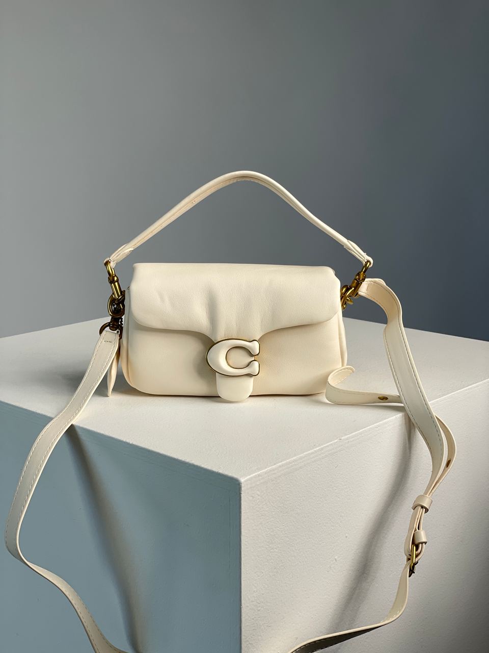 Coach Leather Covered C Closure Puffy Tabby Shoulder Bag Cream