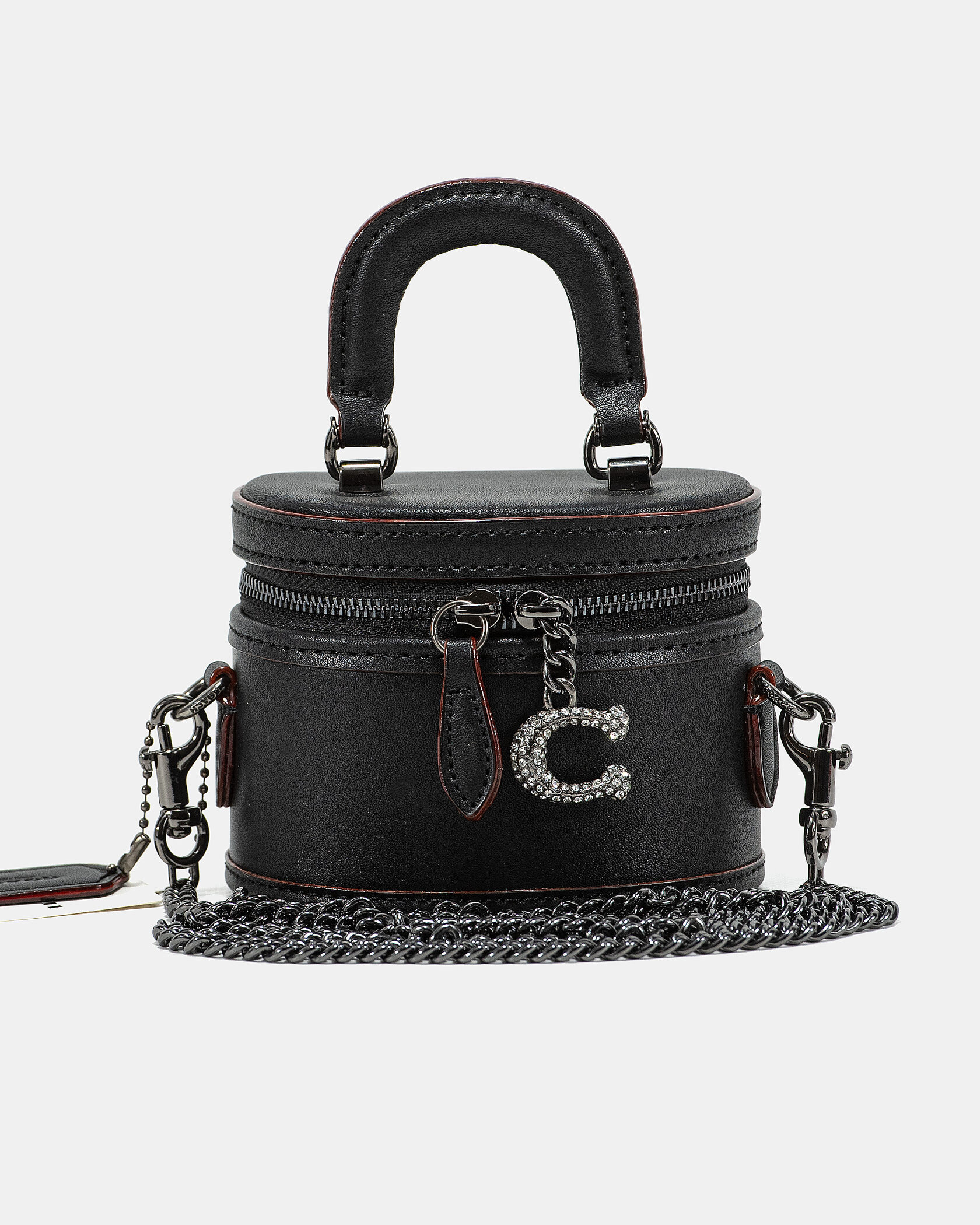 Розмір 11x9x7смМатеріал: Гладка еко-шкіраФурнітура: Срібляста, підвіска у вигляді фірмової літери “C” з каміннямЗакриття: Блискавка по колуВідділення: Одне основне відділенняРемінь: Металевий ланцюжок + зручна ручка для носіння в руціСтиль: Трендова та компактна. Ця мінісумочка Coach — вибір для тих, хто любить акценти. Вишукана фурнітура, ідеальний формат для найнеобхіднішого та модна форма vanity bag — стильний must-have у твоєму гардеробі.
