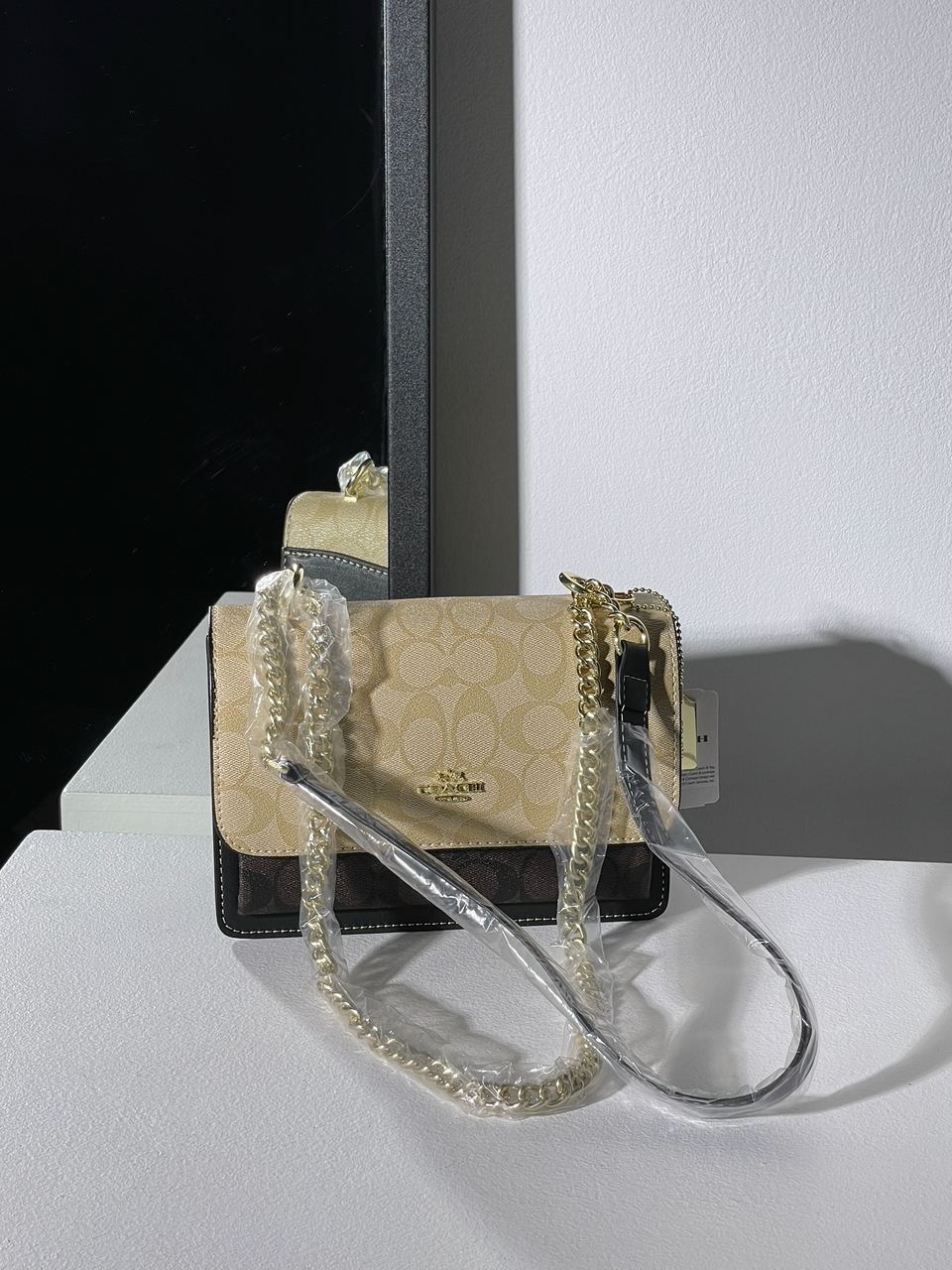 Розмір 21х15х8смСумка виготовлена з гладкої шкіри з фірмовою канвою.Усередині три великих відділення, одна невеличка кишеня, та же одна на застібці.Підкладка всередині текстильна, приємна на дотик.Фурнітура металева, брендована.Золотистий ланцюжок регулюється як для носіння через плече так і у руці, ручка з натуральної шкіри.Комплектується у брендованій коробці на магнітах та пильовику, також є брендовий пакетик, бірки.