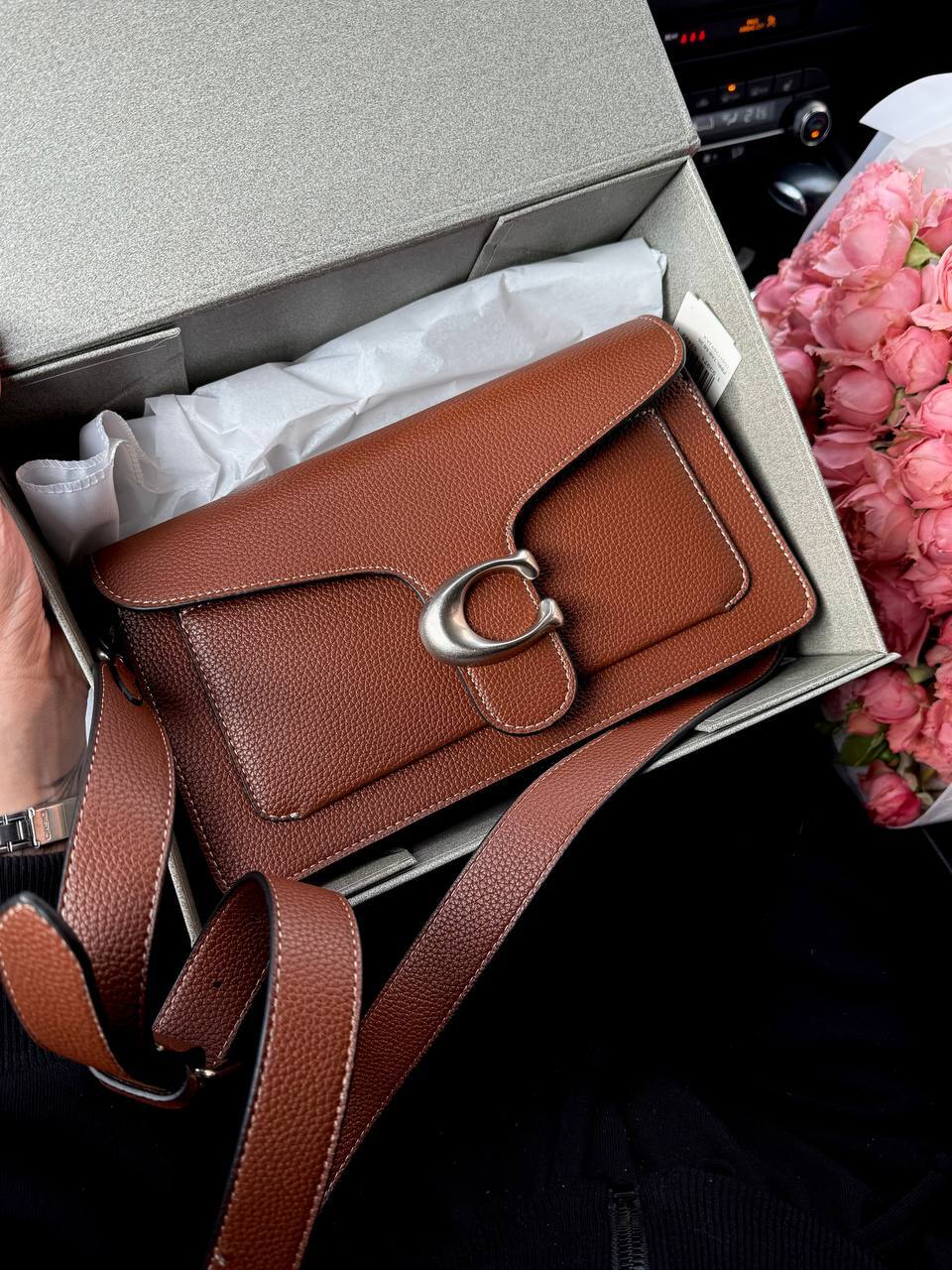 Розмір 26х14х7смМатеріал : шкіраТри відділи, маленька кишеняЛого всередині, лого на фурнітуріВ комплекті:Оригінальна коробка, пильник, пакувальний папір,печиво з передбаченням