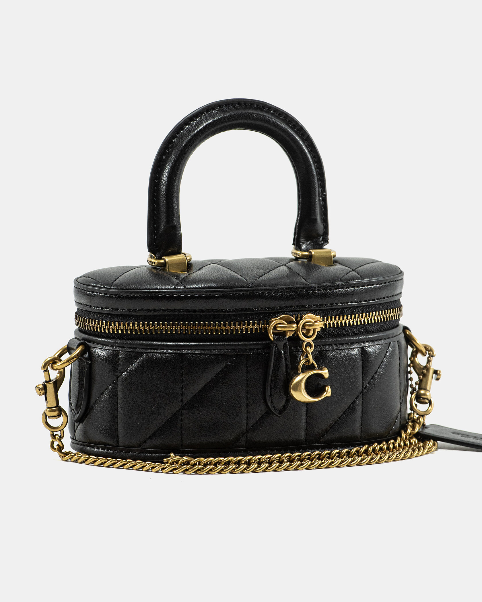 Розмір 17х8х5смМатеріал: Фірмовий текстиль + натуральна шкіраФурнітура: Бронзова, фірмовий брелок CoachЗакриття: БлискавкаВідділення: Одне основне відділення без перегородокРемінь: Верхня шкіряна ручка + ланцюжок через плече (в комплекті)Стиль: Унікальна компактна модель у формі шкатулки — елегантний акцент до будь-якого образу. Легка, зручна та трендова.