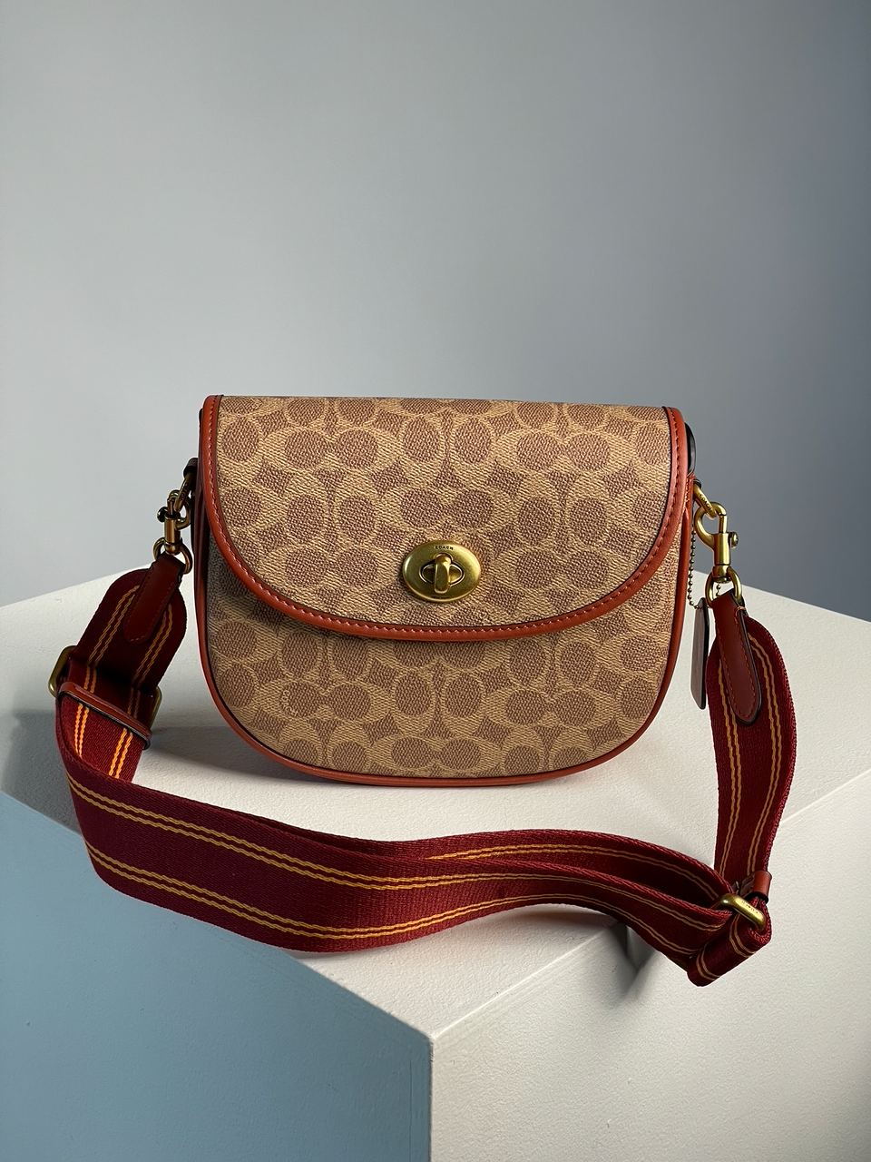 Розмір 22x18x7смСумка виготовлена з якісної шкіри з фірмовою канвою.Усередині одне велике відділення, є кишеня на застібці.Підкладка всередині з щільного текстилю.Якісна металева фурнітура, брендована.Має широкий брендований текстильний ремінець з регульованою довжиною.В комплекті також є шкіряний більш вузький ремінець, довжина регулюється.Комплектується у брендованій коробці на магнітах та пильовику.