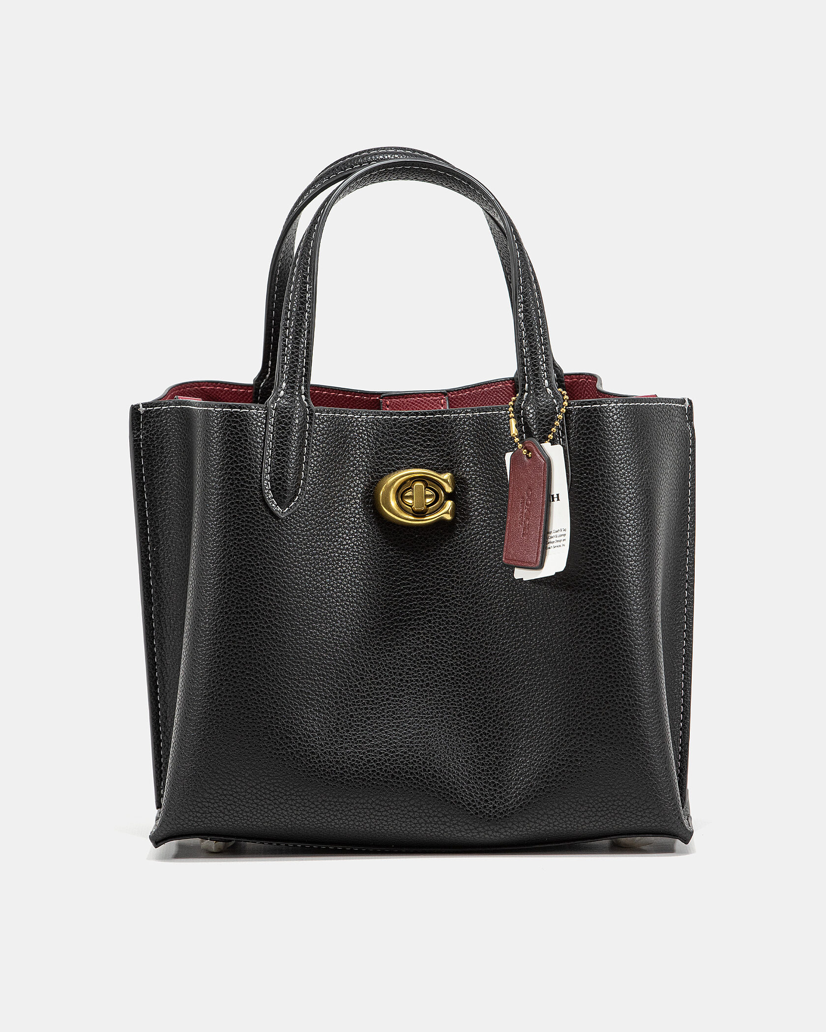 Розмір 24x19x11смМатеріал: Фактурна еко-шкіра з контрастною підкладкоюФурнітура: Золотиста, фірмовий поворотний замокЗакриття: Клапан із металевою застібкоюВідділення: Просторе основне відділення, внутрішня кишеня на блискавціРемінь: Знімний регульований ремінець + зручні короткі ручки для носіння в руці Стиль: Мінімалістична форма та розкішна класика. Ця міні-тоут сумка підходить як для офісу, так і на кожен день. Чорний зовні, бордовий всередині — стильний контраст, який додає шарму.