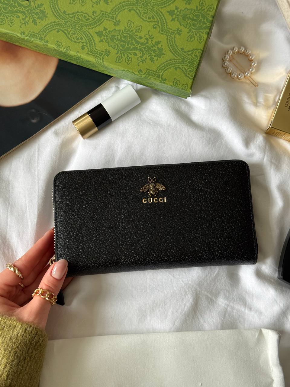 Розмір 20х10х3смМатеріал : шкіраДва відділиЛого на фурнітуріВ комплекті: Фірмова коробка, пильник