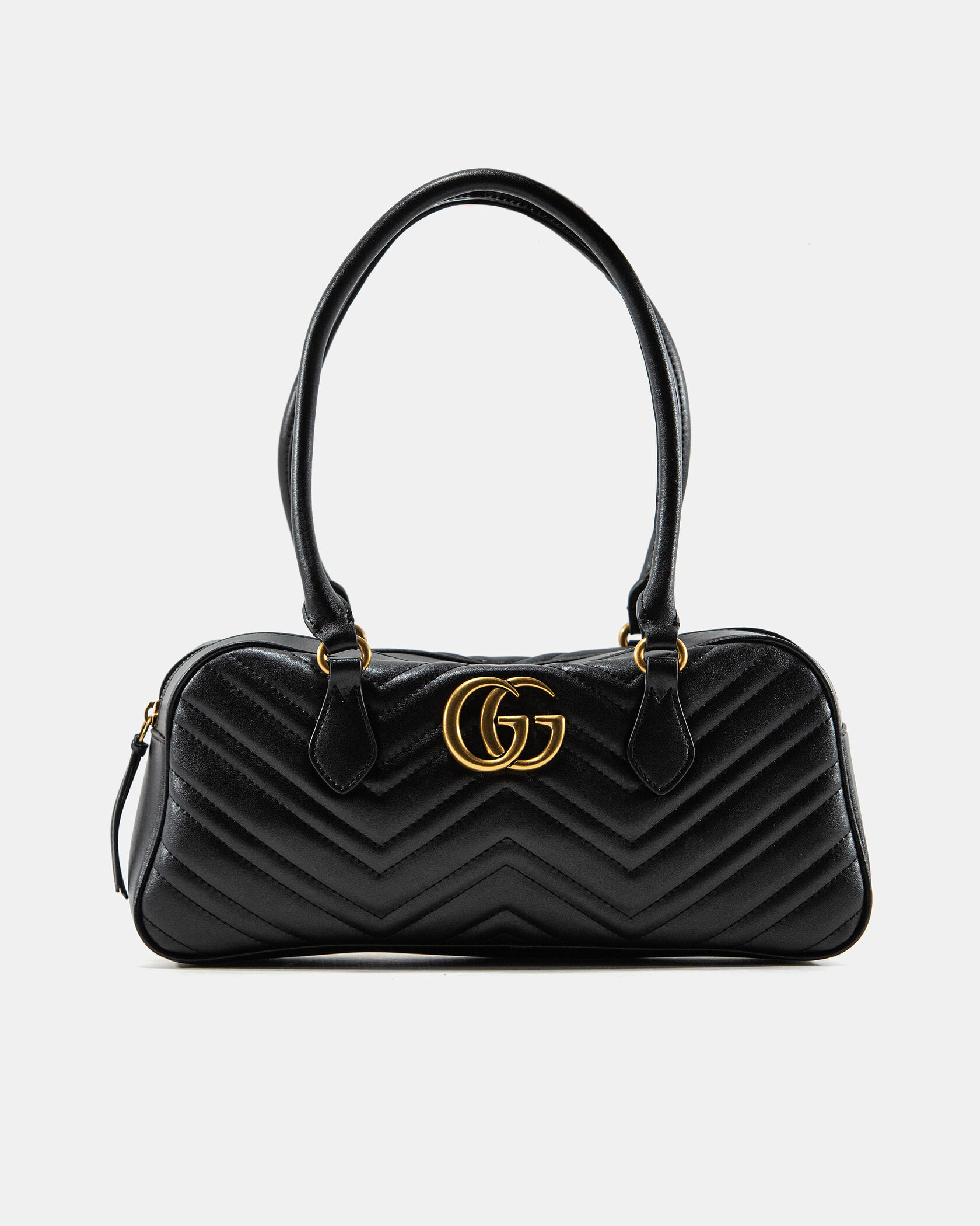 Розмір 34х15х8смМатеріал: Натуральна шкіраФурнітура: ЗолотаРучки: Подвійні, для носіння в руці або на плечіВідділення: Основне на блискавці, всередині кишеняОсобливість: Елегантна сумка Gucci із культовим візерунком “chevron” та металевим логотипом GG. Ідеальна для офісу, побачень і подорожей