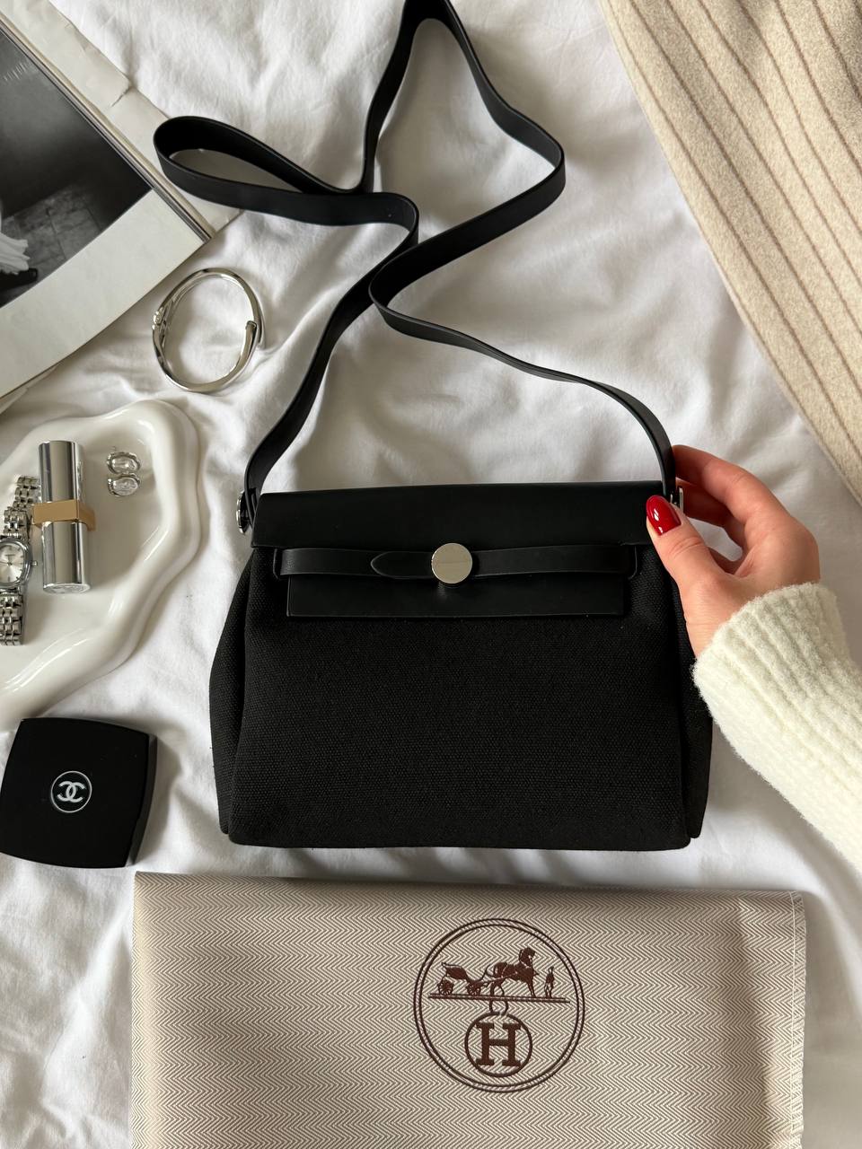 Розмір 20х16х7смМатеріал : шкіра, текстильОдин відділ, маленька кишеняЛого на фурнітурі та ремінціВ комплекті: оригінальна коробка, пильник, пакувальний папір