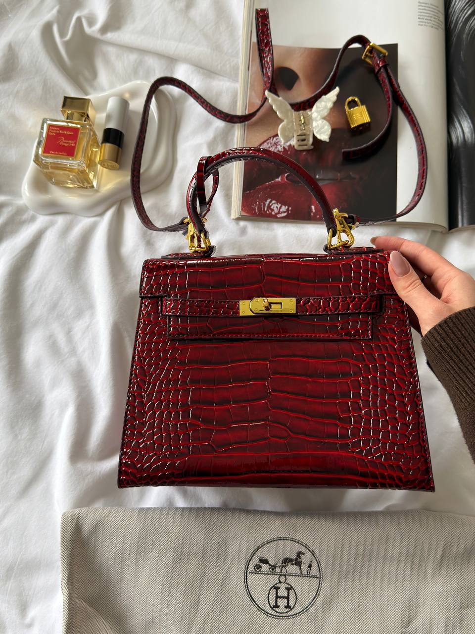 Розмір 25х20х10смМатеріал : лакована шкіраОдин відділ, маленька кишеняЛого всерединіВ комплекті: коробка, пильник, пакувальний папір