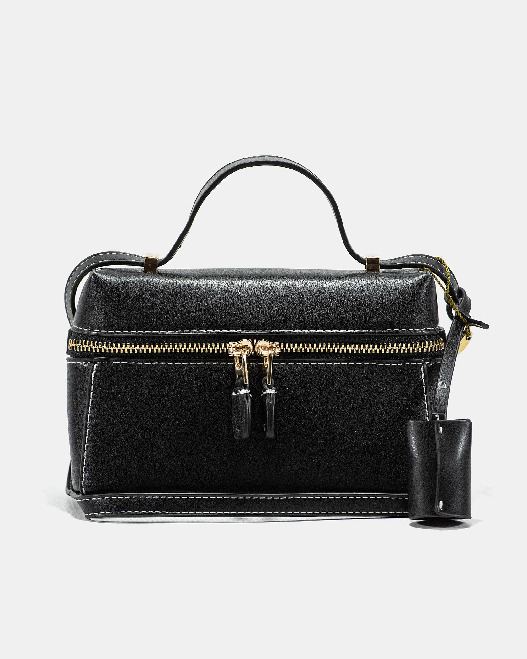 Розмір 18x12x6см Матеріал: Гладка екошкіраФурнітура: Золота + подвійна блискавкаРемінець: Регульований, з декоративними петлямиУсередині: Просторе відділення, щільна підкладкаОсобливість: Актуальна форма на кожен деньОбраз: Строгий, мінімалістичний і розкішний одночасно