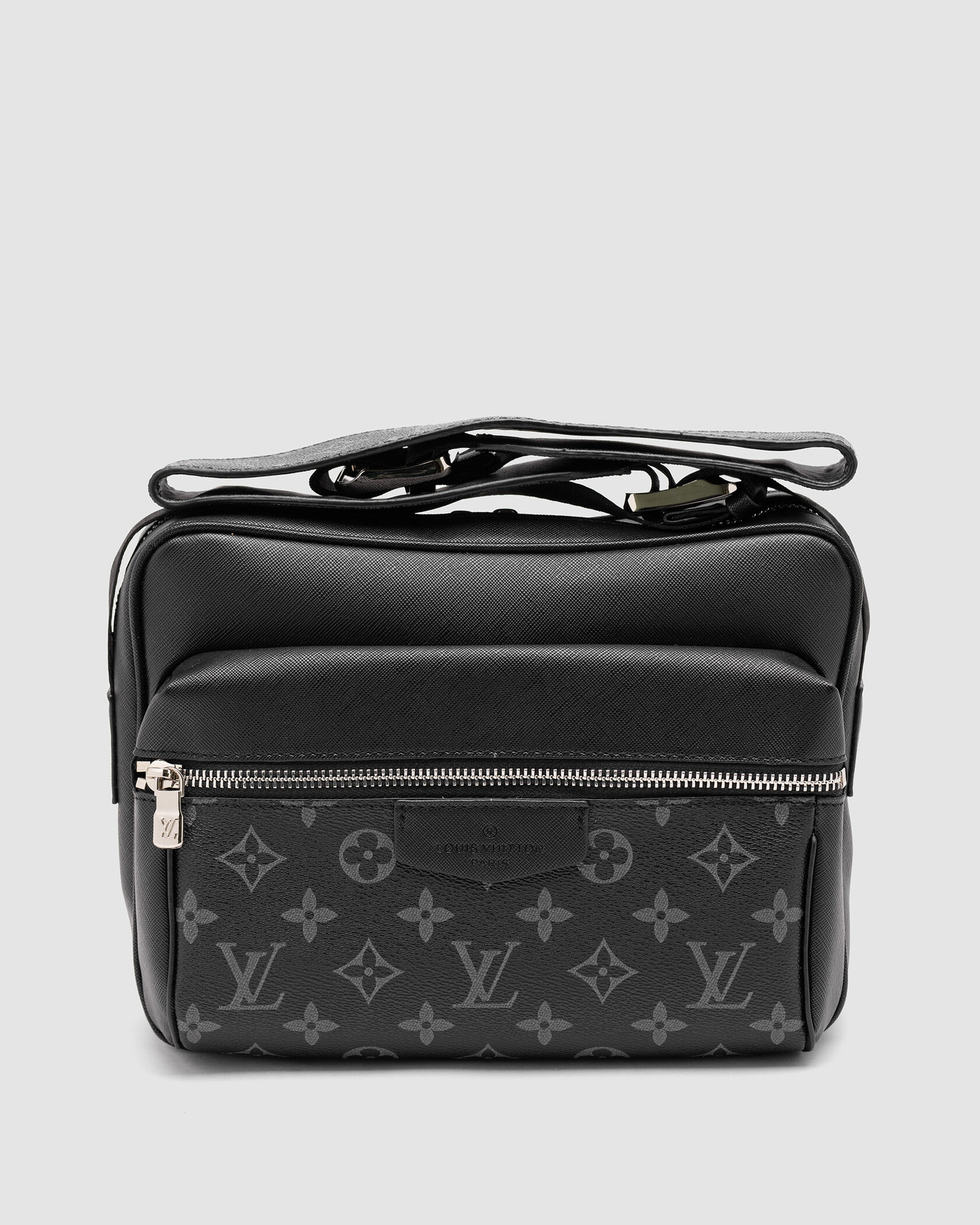 Розмір 24х18х7смСумка виготовлена з гладкої шкіри з фірмовою канвою.Має два відділення, у більшому також є кишеня з фірмовою нашивкою.Зачиняються відділення на застібках.Підкладка з щільного та якісного текстилю.Фурнітура металева, брендована.Ремінець для носіння через плече з шкіри та текстилю, регулюється за довжиною.Комплектується у брендовій коробці на магнітах та пильовику.
