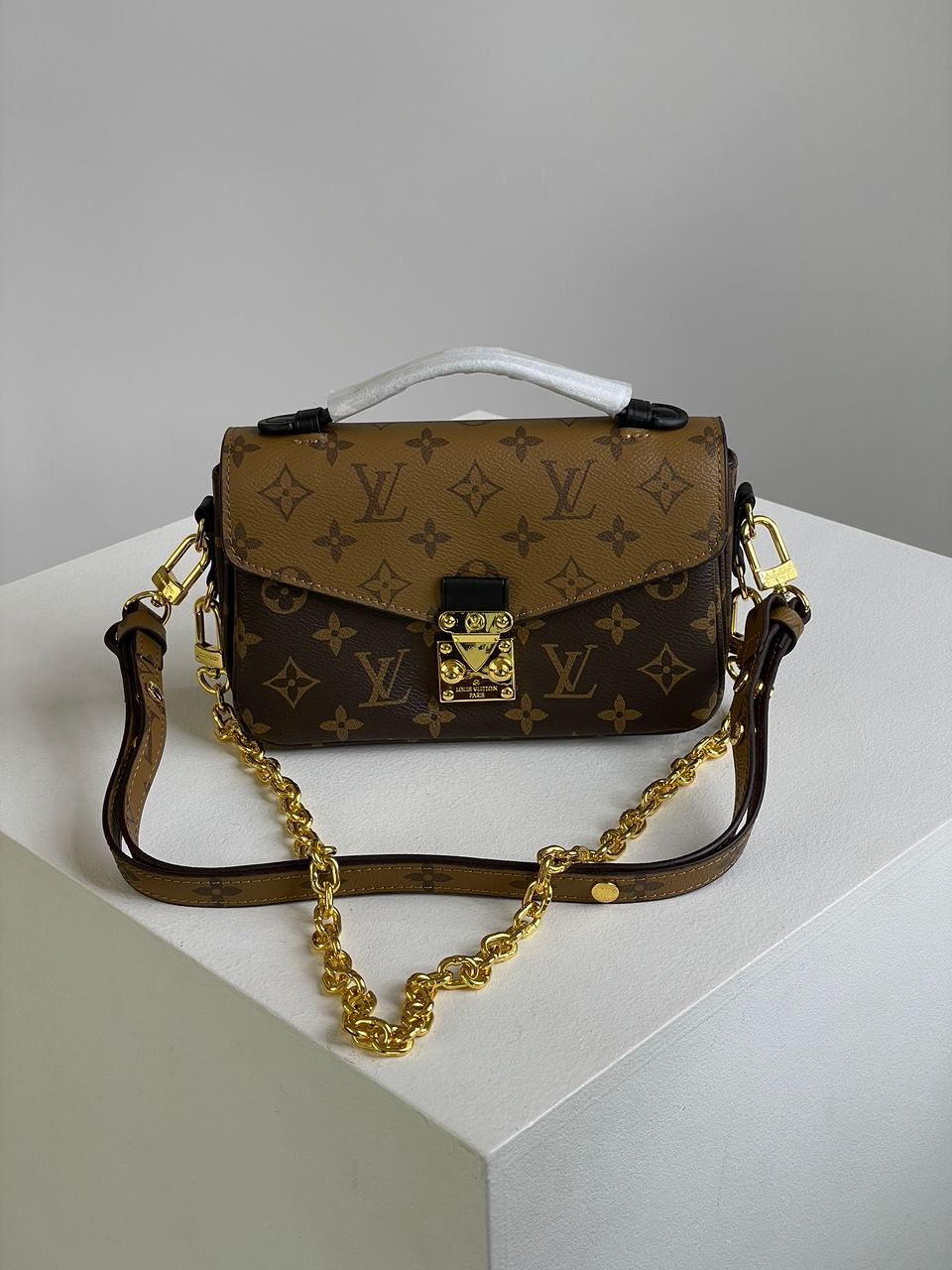 Розмір 21х13х6смСумка виготовлена з гладкої шкіри з фірмовою канвою.Всередині три відділення, одна з яких на застібці.Підкладка з приємного на дотик текстилю чорного кольору.Фурнітура металева та брендована.В комплекті є металевий ланцюжок під золото.Для носіння через плече є ремінець з регулюємою довжиною на заклепках.Комплектується в брендованій коробці на магнітах, сама сумка пакується в пильовик, також є буклети ти чеки.