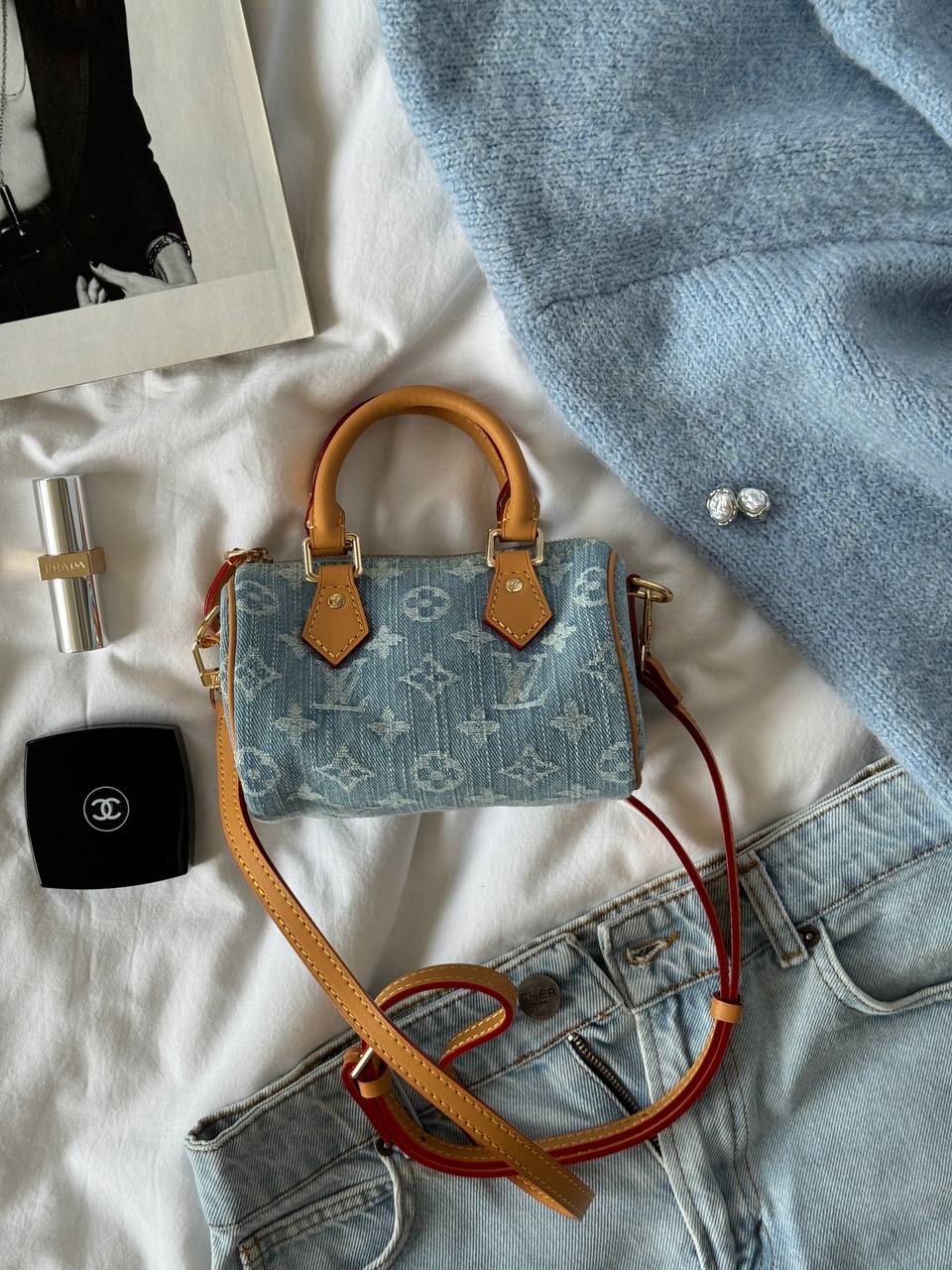 Розмір 16х9х8смМатеріал : денім, шкіраОдин відділЛого всередині, лого на фурнітуріВ комплекті: магнітна коробка, пильник, пакувальний папір
