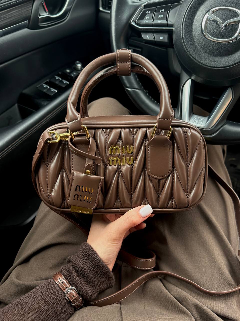 Розмір 22х12х7смМатеріал : натуральна шкіра, всередині текстильний підкладОдин відділ, маленька кишеняМеталеве лого всередині Довгий ремінець 95 см максимальна довжина (регулюється)В комплекті: коробка miu miu, пакувальний папір, пильник фірмовий, печиво з передбаченням