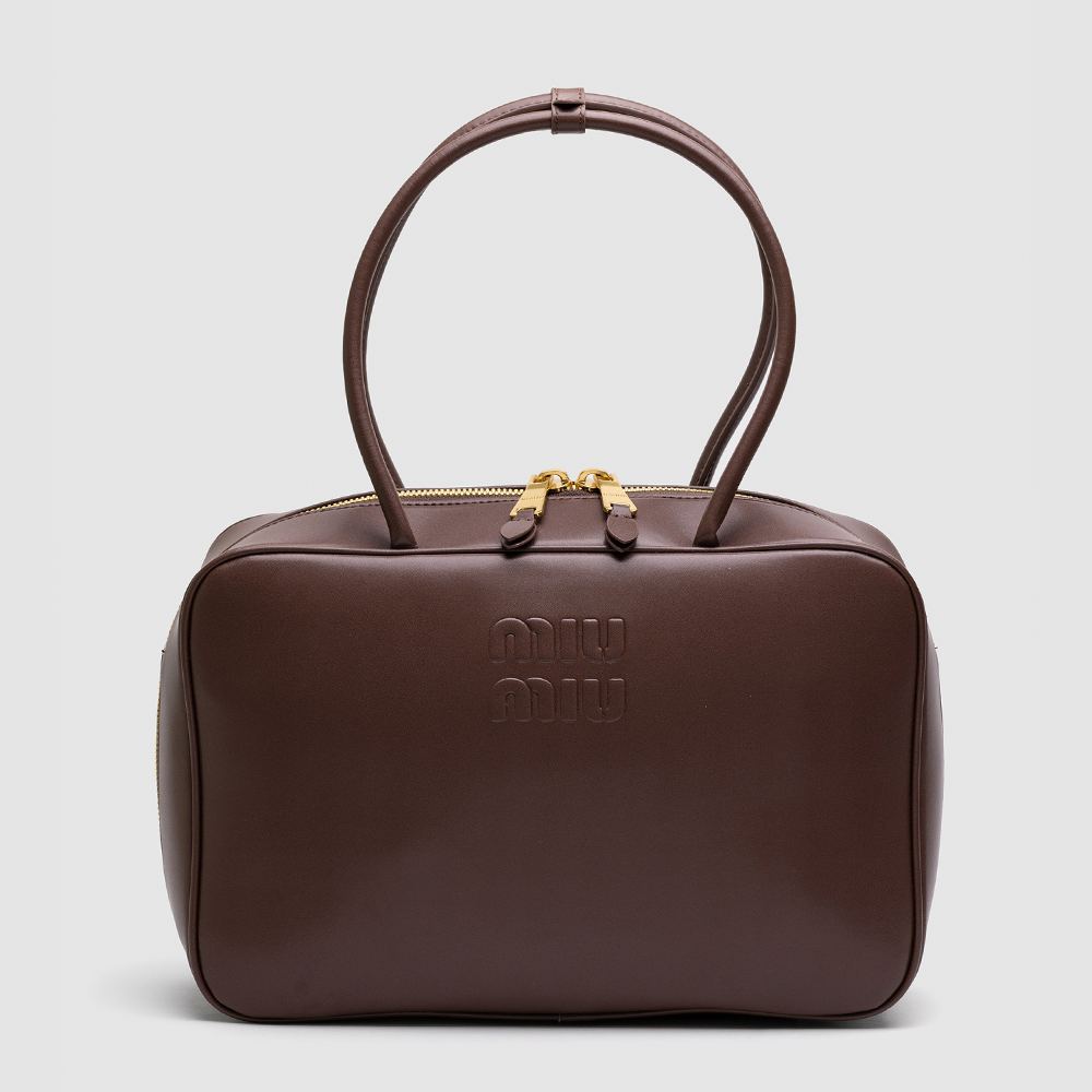 Miu Miu Chocolate Leather Beau Top-Handle Bag