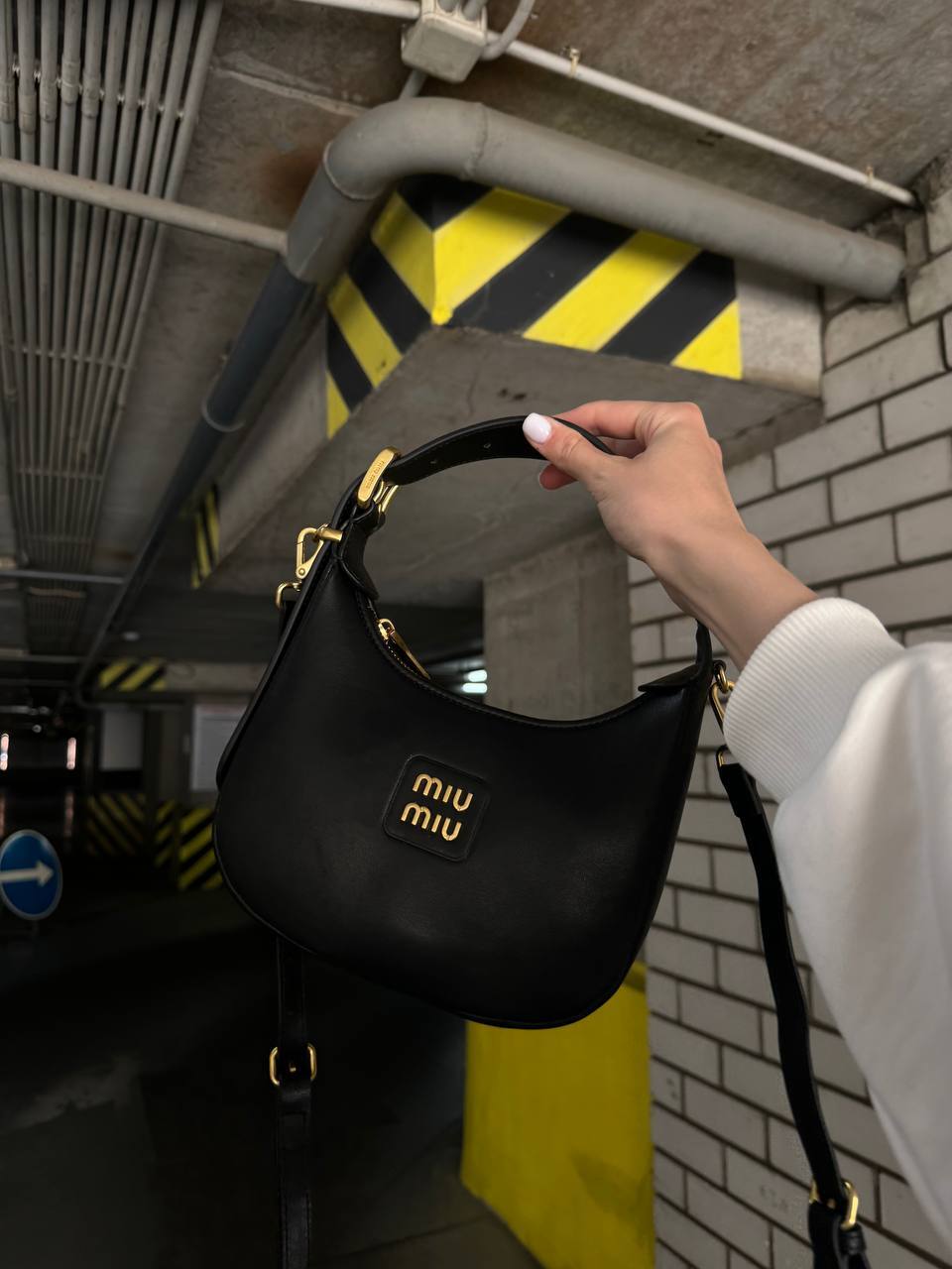 Розмір 21х23х7смМатеріал : натуральна шкіраОдин відділ, маленька кишеняМеталеве лого всередині Довгий ремінець 95 см максимальна довжина (регулюється)В комплекті: магнітна коробка miu miu, пакувальний папір, пильник фірмовий