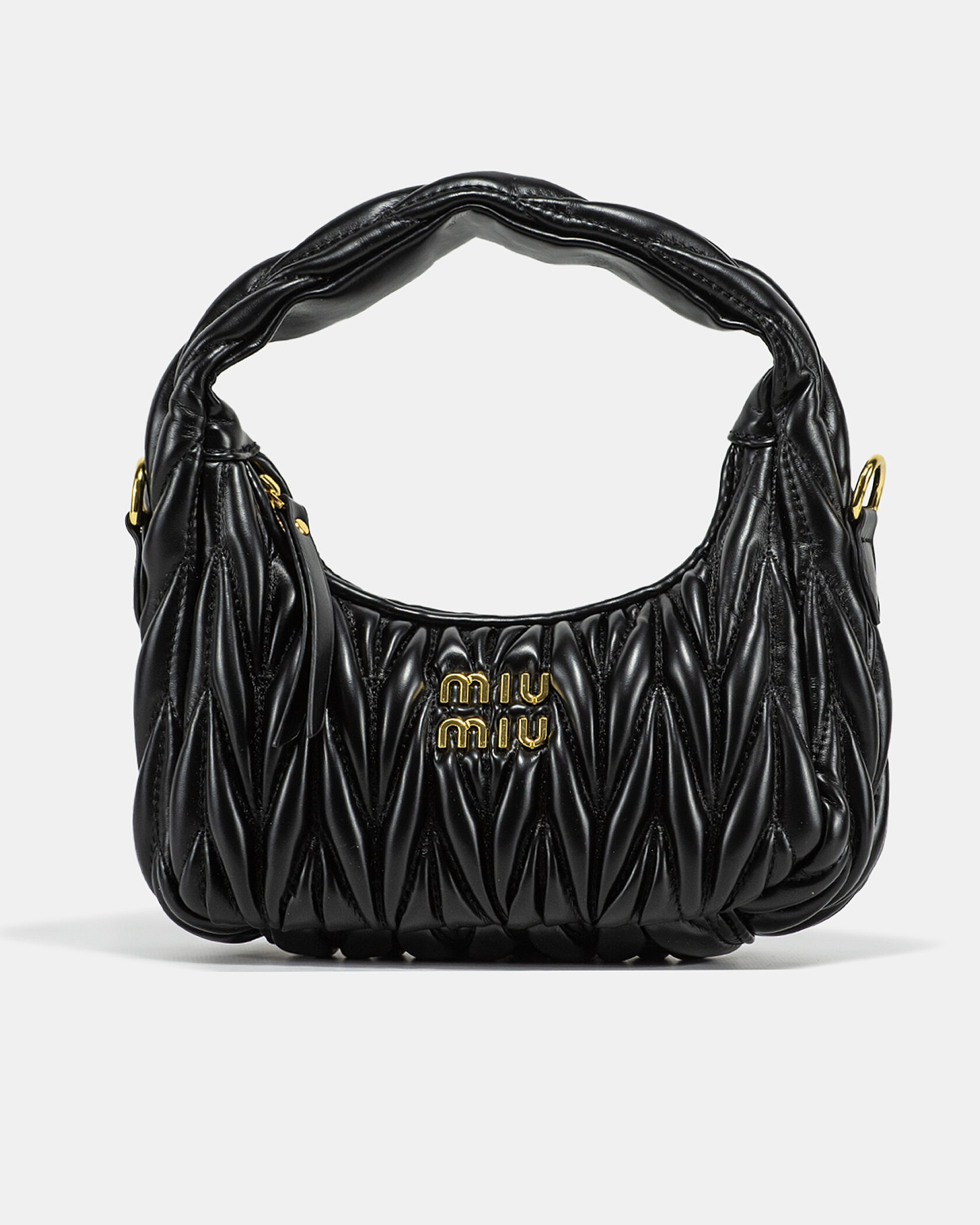 Miu Miu Wander Matelassé Nappa Leather Mini Hobo Bag Black