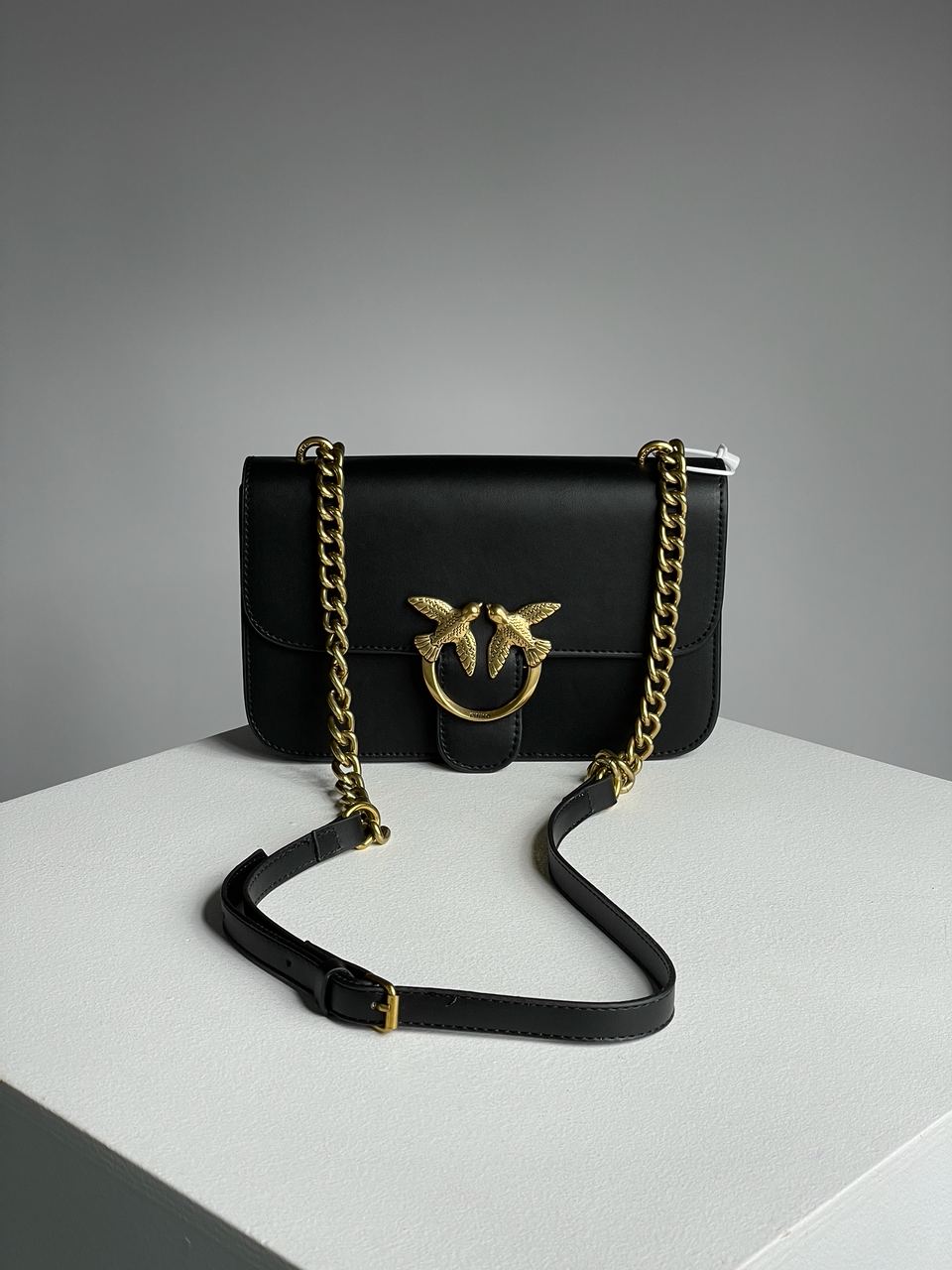 Розмір 24х15х7смСумка виготовлена з натуральної шкіри.Всередині три відділення, одне з них на застібці, друге зачиняється на магніті-клапані.Підкладка з приємного на дотик бархатного текстилю.Фурнітура металева, брендована.Для носіння через плече є ланцюжки з регулюємим по довжині шкіряним ремінцем.Комплектується у брендованій коробці та пильнику, є пакет та буклетики.