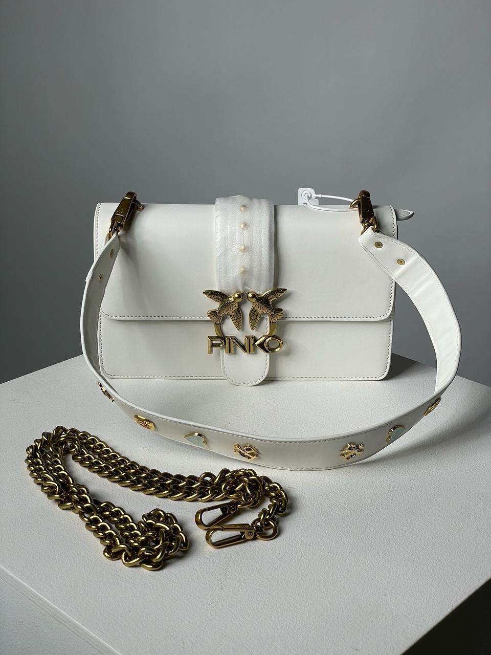 Розмір 27х16х7смСумка виготовлена з натуральної гладкої шкіри.Попереду фірмовий логотип за яким ховається замочок.Всередині два відділення, поміж ними є кишеня на застібці.Підкладка у сумки з щільного приємного на дотик текстилю.Фурнітура металева, брендована.В комплекті коротший ремень з пінами та більш довгий ланцюжок.Можна носити як через плече так і у руці.Комплектується у фірмовій коробці, пильовику, пакетику, також є невеликі буклетики.