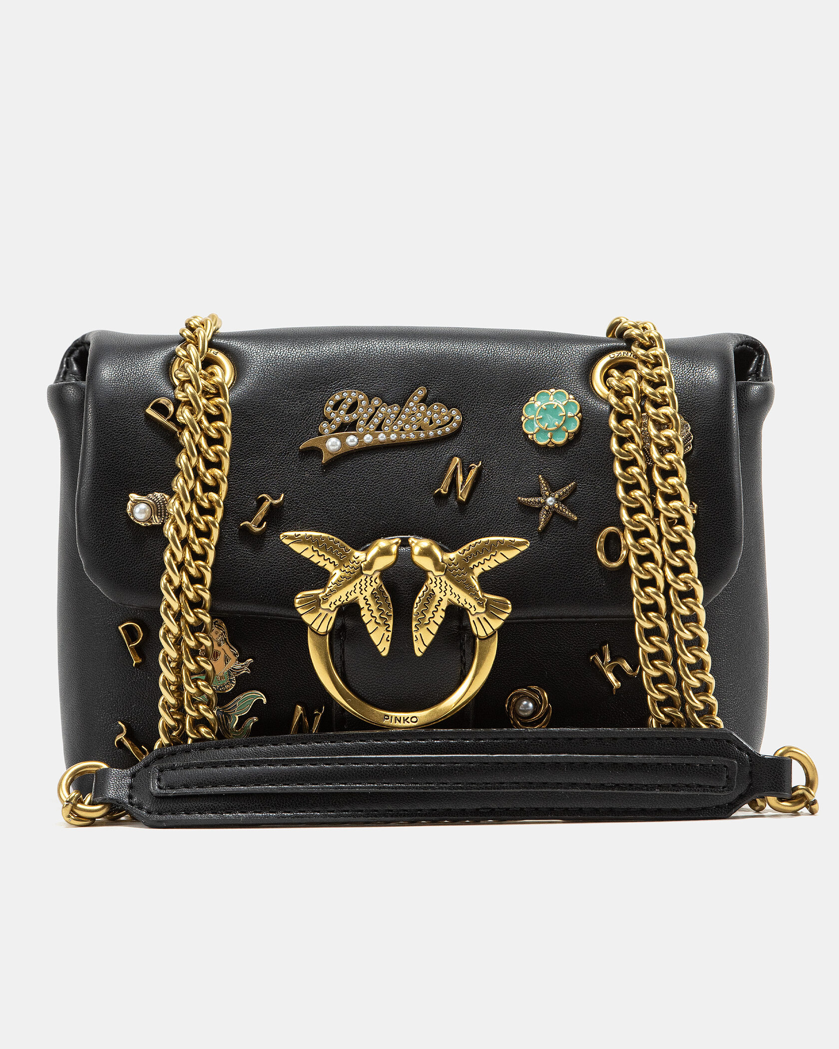 Розмір 23x16x8смМатеріал: Натуральна шкіраФурнітура: ЗолотаЛоготип: Знакова пряжка Love BirdsДекор: Металеві букви, зірки, кристали та інші прикраси, що створюють ефект hand-made стилюРемінець: Подвійний металевий ланцюжок у золотому кольоріВідділення: Основне з внутрішньою кишенеюЗакриття: Клапан із магнітною застібкоюСтиль: Гламурна та креативна модель з акцентом на унікальний декор. Ідеальна для модних вечірок, стильних образів і неординарного луку.