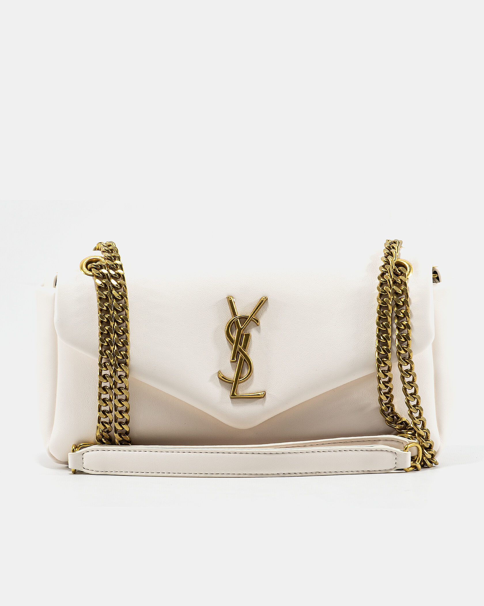 Розмір 25x14x6смМатеріал: ШкіраФурнітура: ЗолотаОсобливості: Стильна сумка з м’якою стьобаною текстурою, ланцюжком і логотипом YSL. Вишуканий варіант для елегантних образів і особливих подій.