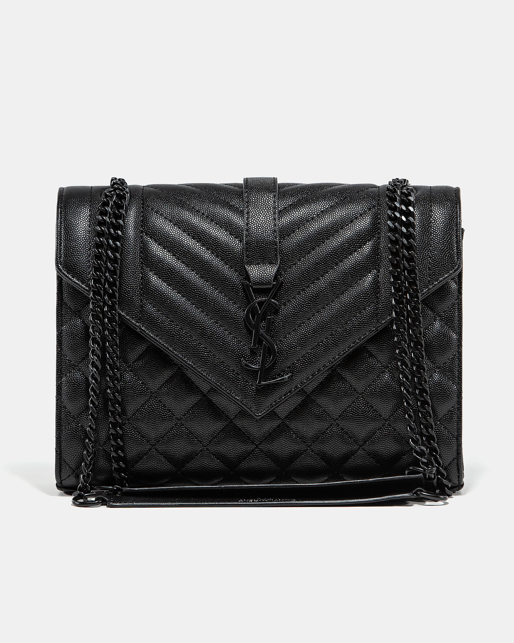 Розмір 25x18x7смМатеріал: ШкіраФурнітура: ЧорнаОсобливості: Елегантна стьобана сумка зі стильним монохромним оздобленням, ланцюжком і логотипом YSL. Ідеальний аксесуар для сучасного мінімалістичного образу.