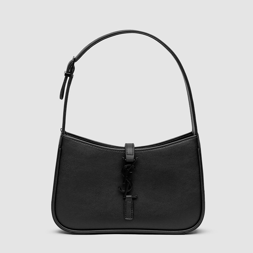 Saint Laurent Hobo Le 5 A 7 Leather Shoulder Bag in Black/Black